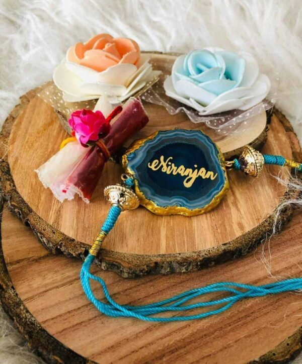 Add a touch of creativity and elegance to your Raksha Bandhan celebration with this Custom Name Rakhi made using Resin Art. Beautifully handcrafted, this rakhi features your brother’s name embedded in glossy resin with artistic detailing. It’s not just a rakhi — it’s a mini piece of art, filled with love, color, and uniqueness.