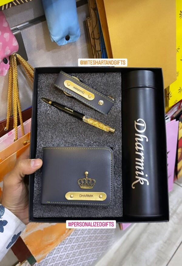 1. Looking for a premium personalized gift for men? This 4-piece combo set is a perfect mix of style, utility, and personalization, featuring: